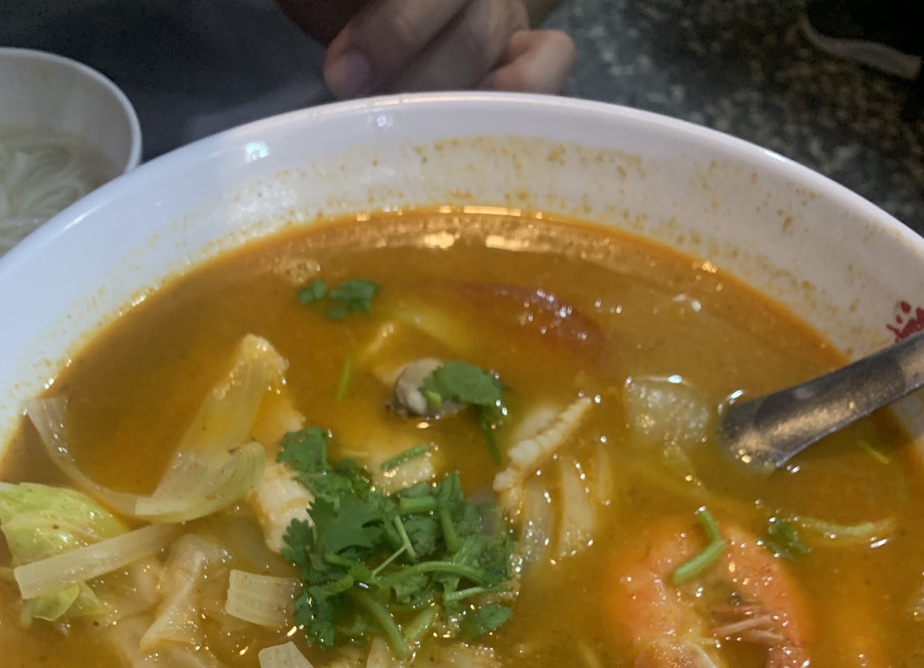 點了酸辣海鮮米線,湯頭口味重非常好吃?米線很入味,加了香菜畫龍點睛??但海鮮配料上如蛤蜊、蝦子、魚肉就沒這麼好吃。單價偏高,但在政大寒假期間又過年前願意營業,能吃到很開心☺️