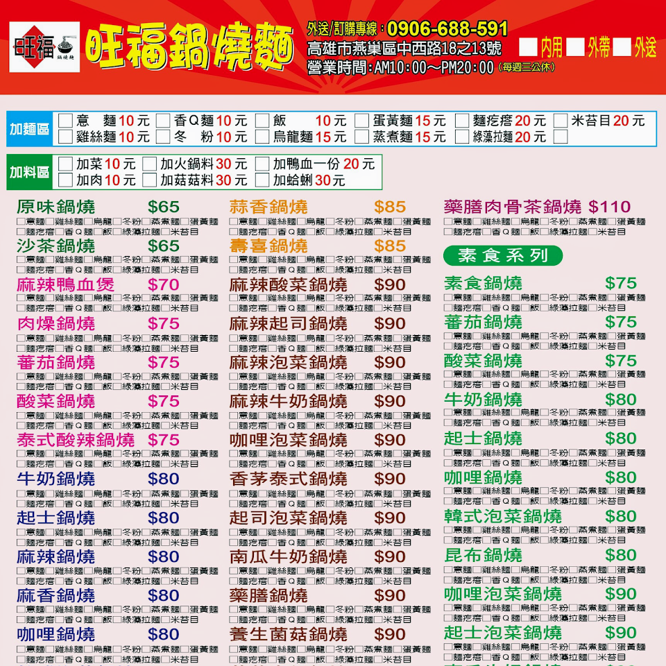 2024最新在地推薦餐廳的菜單_旺福鍋燒麵專賣店的菜單、圖片