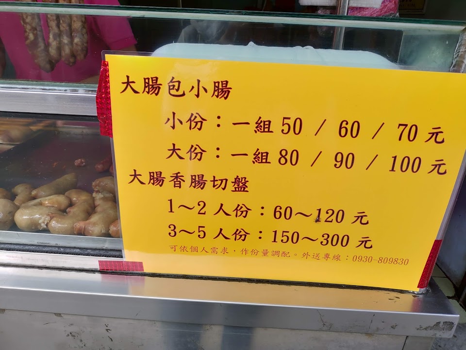 糯米大腸好吃,特別是微焦的外皮有特別的香味,香腸雖然斷面有油花,但口感偏瘦,紮實也不會太柴,不過價格個人覺得中高,60元的切盤香腸數量不多,大多都是米腸,不過老闆親切,也可電話連絡預定。