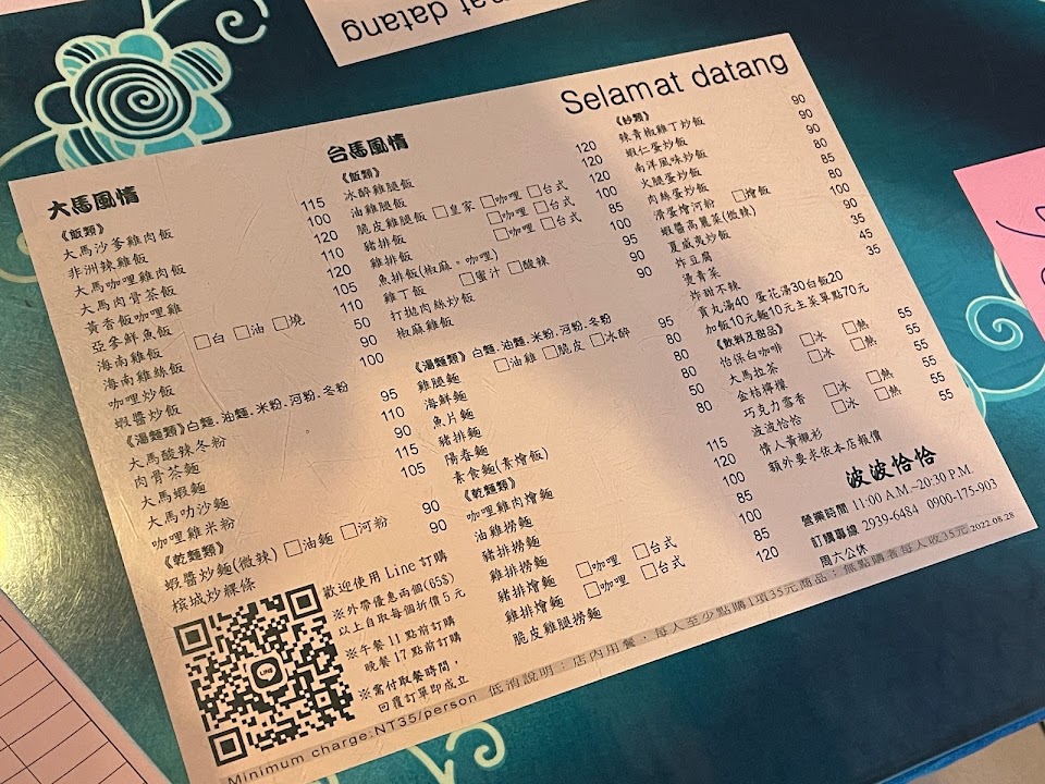 2024最新在地推薦餐廳的菜單_波波恰恰大馬風味餐的菜單、圖片