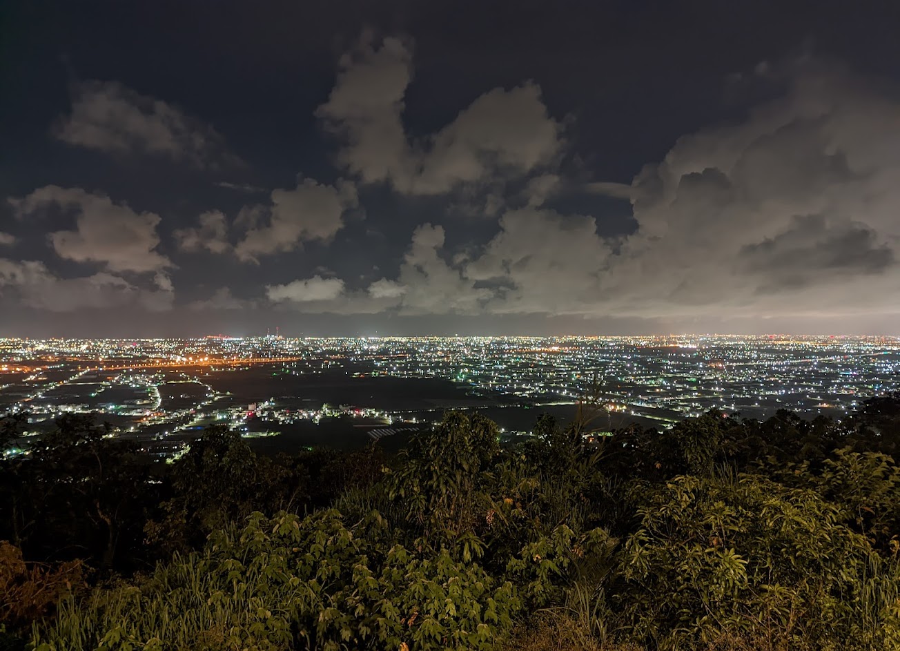 旁邊走幾步階梯可以遠眺大崗山美景,設有大概3桌20人左右的石桌泡茶區,可以讓人帶茶葉茶具在上面泡茶聊天看夜景,晚上還算蠻涼快的,很愜意!