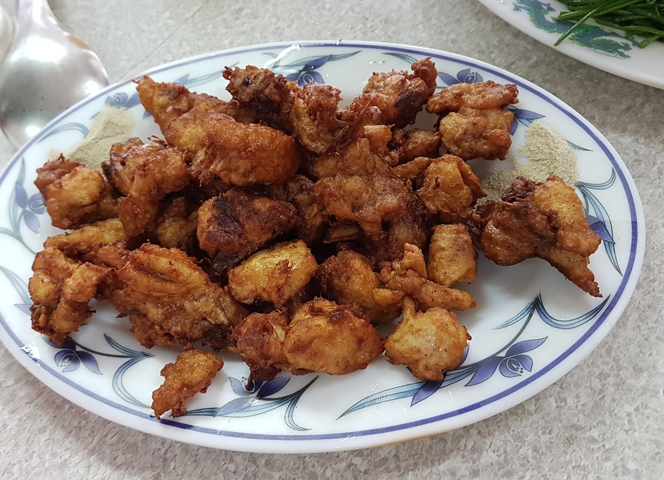 女服務員說英語。她人很好。當地的雞肉被打碎並油炸。很溫柔。大蒜蔬菜也不錯。我們跳過了米飯和辣醬,因為那是一個非常炎熱的日子。