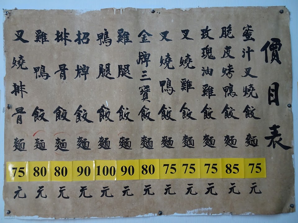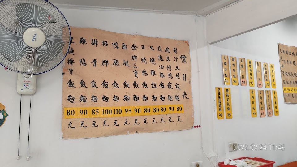 這間位於政大指南路遇到八方雲集轉進巷子裡的燒臘店家,已經是在地居民和政大校友共同回憶以外,也是這些老店家中少數幾家在幾波消長後還碩果僅存的了;但或許也是近幾年政大周邊新型餐飲店家林立、以及學生口味和消費取向有所變更的關係,時常看得出店家雖然還是有在營業、但營業時間內燈光和人潮都有些黯淡就是了;算是很老式的小吃簡餐店家擺設,常設有一台電視撥放著新聞。 直至今日似乎還有著自帶餐具可以便宜幾元或是給的份量比較大的優惠,芙蓉蛋蓋飯和對面同樣也是老店家的做法不同的是裡面給的肉就是都很雜的都有了,算是相較起來煎的比較乾沒太多蛋液的一款,不過這家的主餐類共同特色都是同條街上價位較便宜以外、也給的份量比較大份,縱使目前已要到了80元以上亦然;而原本幾乎都有一旁免費供應的綠豆湯和紫菜湯在現在內用要遇到也得碰碰運氣了。 服務 內用 餐點類型 晚餐 平均每人消費金額 $1-200