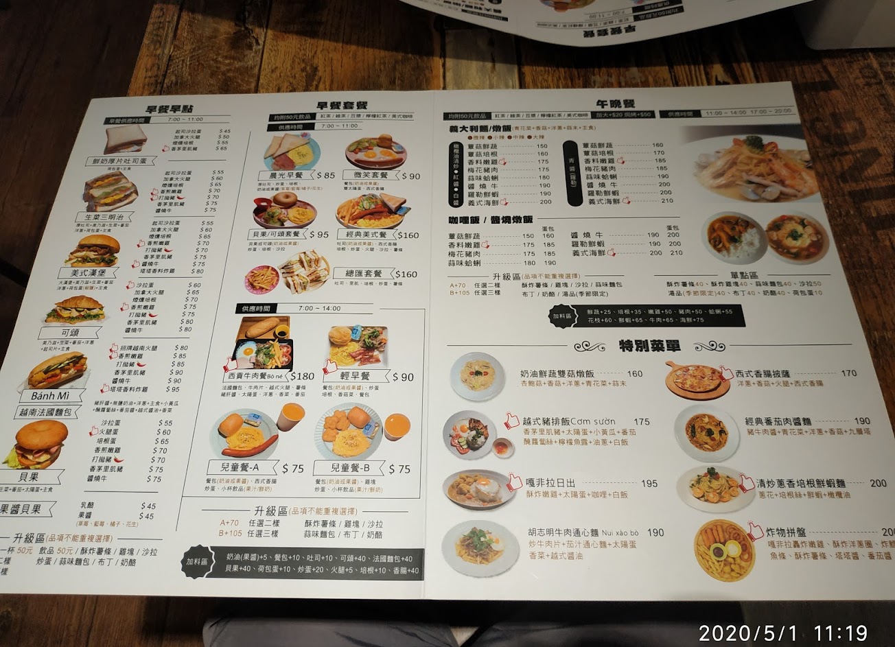 越式風格早餐店,但是也有午晚餐供應,餐點有義式飯麵和披薩,越式簡餐,還有美式炸物,每樣餐點都不錯吃,午晚餐時段客人絡繹不絕,外帶的客人也不少。食量大的客人還可以加量,每個主餐都附50元飲料,選擇還不少。