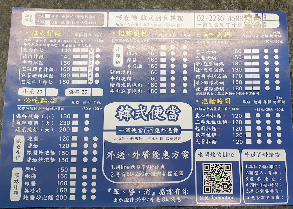 2024最新在地推薦餐廳的菜單_哆食樂新韓式料理-世新店的菜單、圖片