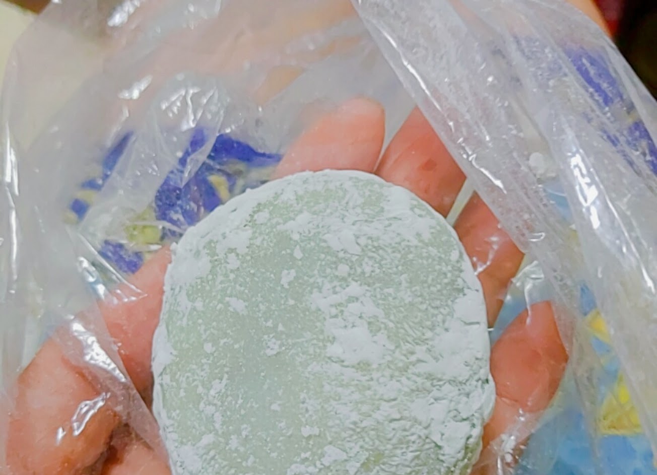 麻糬外加花生糖粉,因為這個保存期限有再多一天,所以就特別買了這個,也是非常的好吃,不過麻糬在塑膠袋裡面會黏,可見的不會太多油。