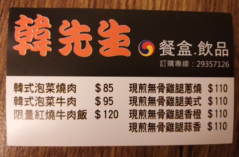 2024最新在地推薦餐廳的菜單_韓先生餐盒/飲品的菜單、圖片