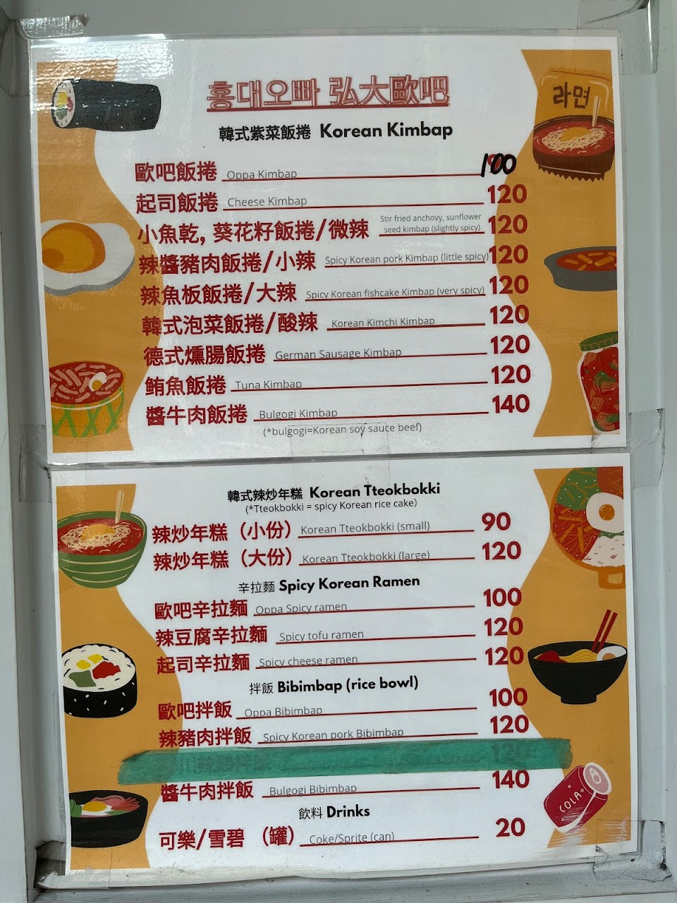 2024最新在地推薦餐廳的菜單_弘大歐吧(韓國紫菜飯捲專賣店)的菜單、圖片