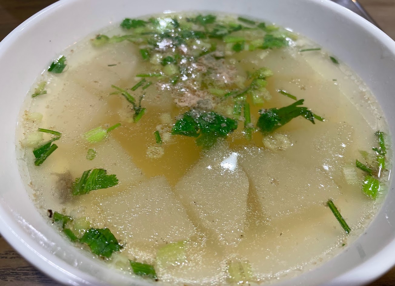 湯有加油蔥跟韭菜末,油蔥香味平淡