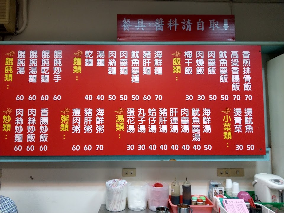 看起來是老店,生意也不錯,拋棄了便當店來這嚐嚐,口味一般般,海鮮麵跟餛飩湯是一樣的味道…梅干飯以為很特別,卻依舊是平淡無奇,乾麵、燙青菜的靈魂,肉燥!也是沒滋沒味,賣像看起來都不錯,但是這味道不是我的菜,或許這是在地口味的最愛也說不定,用餐環境也不優,唯一的優點就是價格平實而份量足!