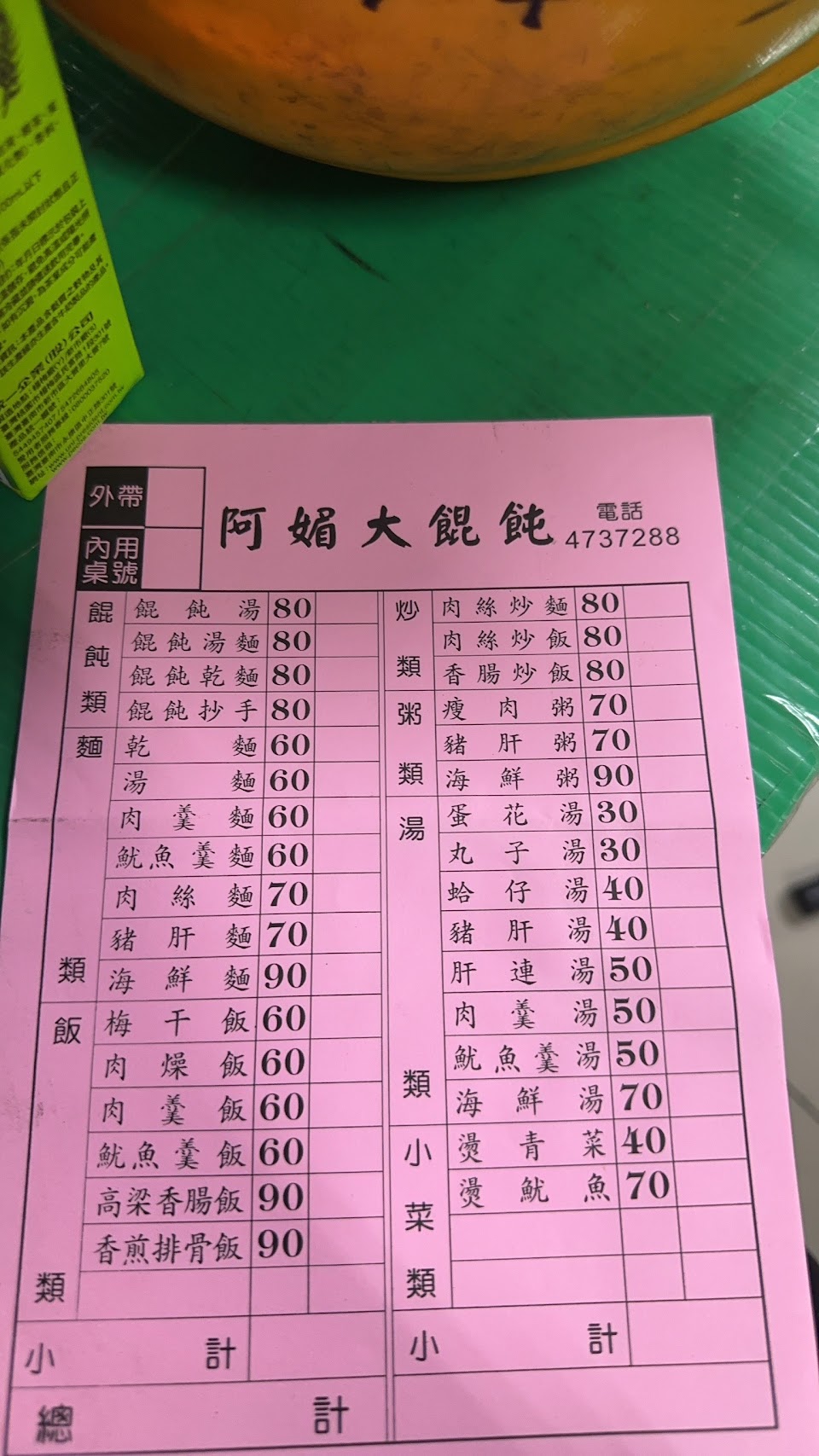 2024最新在地推薦餐廳的菜單_阿媚大餛飩的菜單、圖片