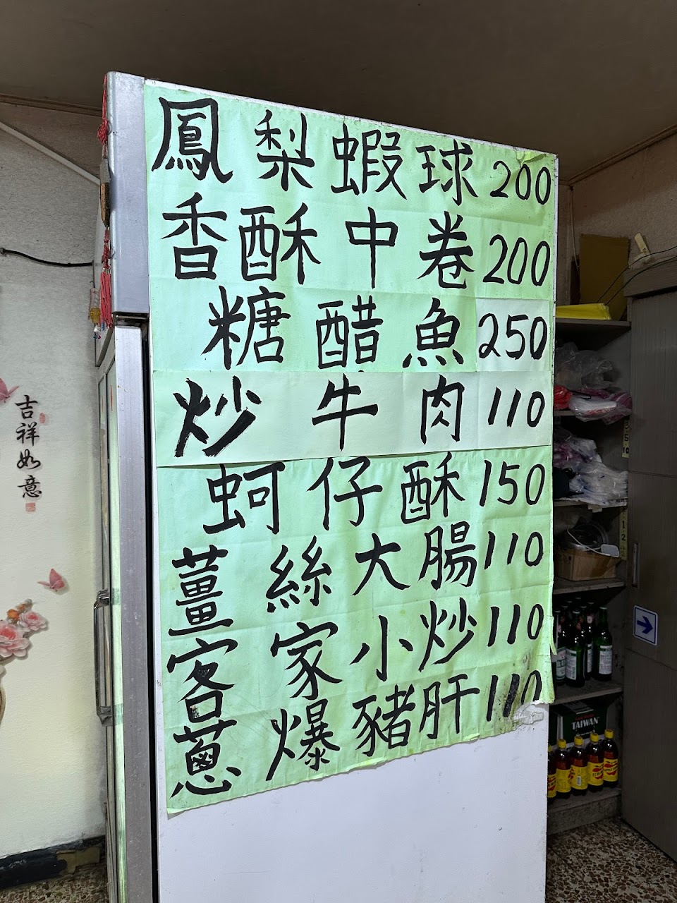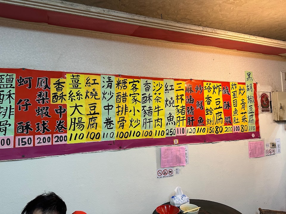 平日生意超火的菜單較多選擇,假日就少些選擇了,但是桌位空多了 服務 內用 餐點類型 晚餐 平均每人消費金額 $200-400 建議的餐點 炒山豬肉 炒菠菜 清炒中卷 炒 鱔魚炒麵 蚵仔酥