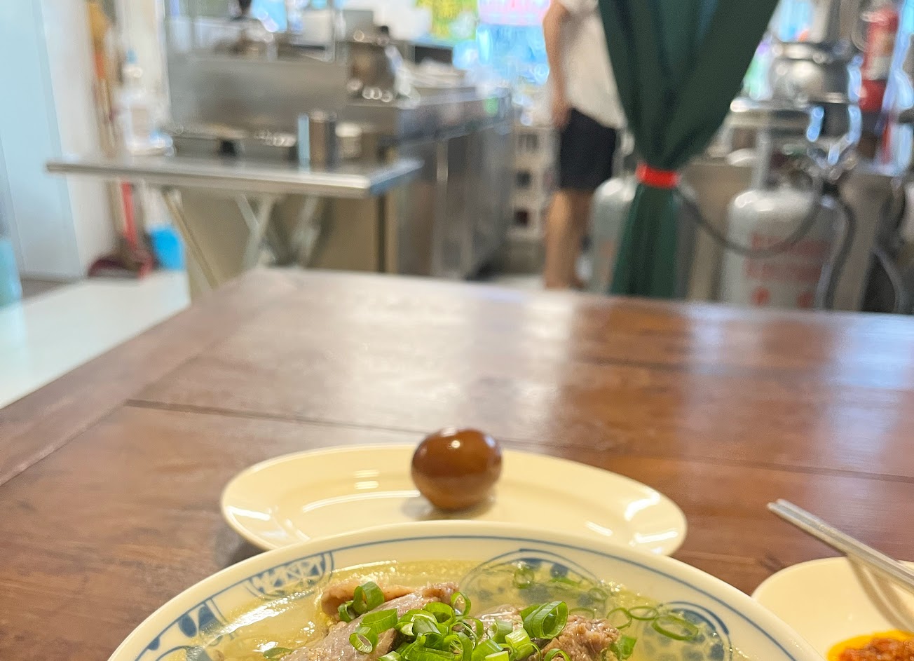 菜市場中難得乾淨舒適、有冷氣吹的牛肉拌麵店,當天實在太熱,所以點了一份花椰菜、涼麵、湯簡單吃。