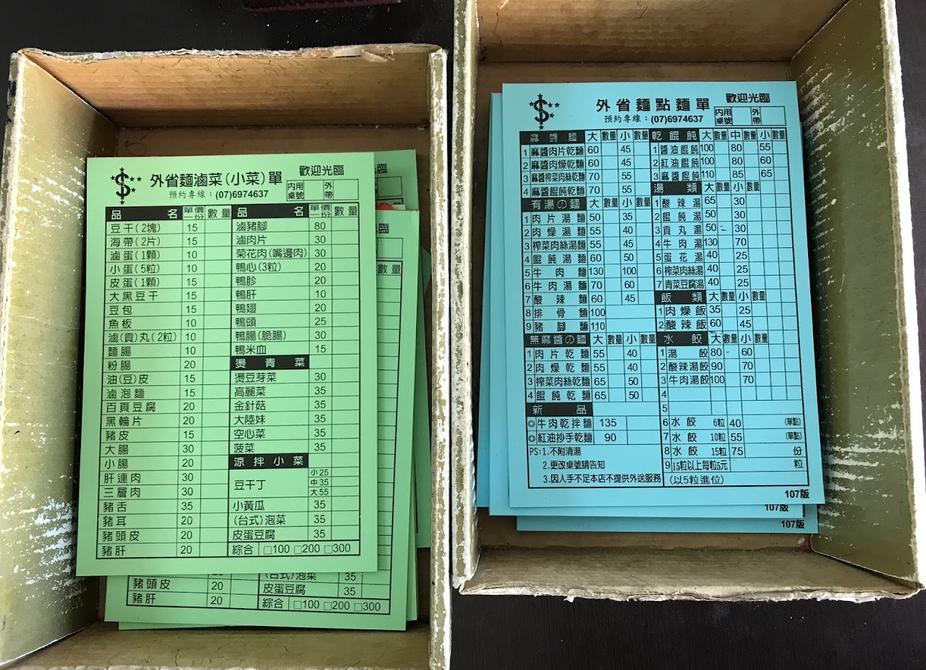 主食和小菜是不同單字,寫好到前面櫃檯結帳。