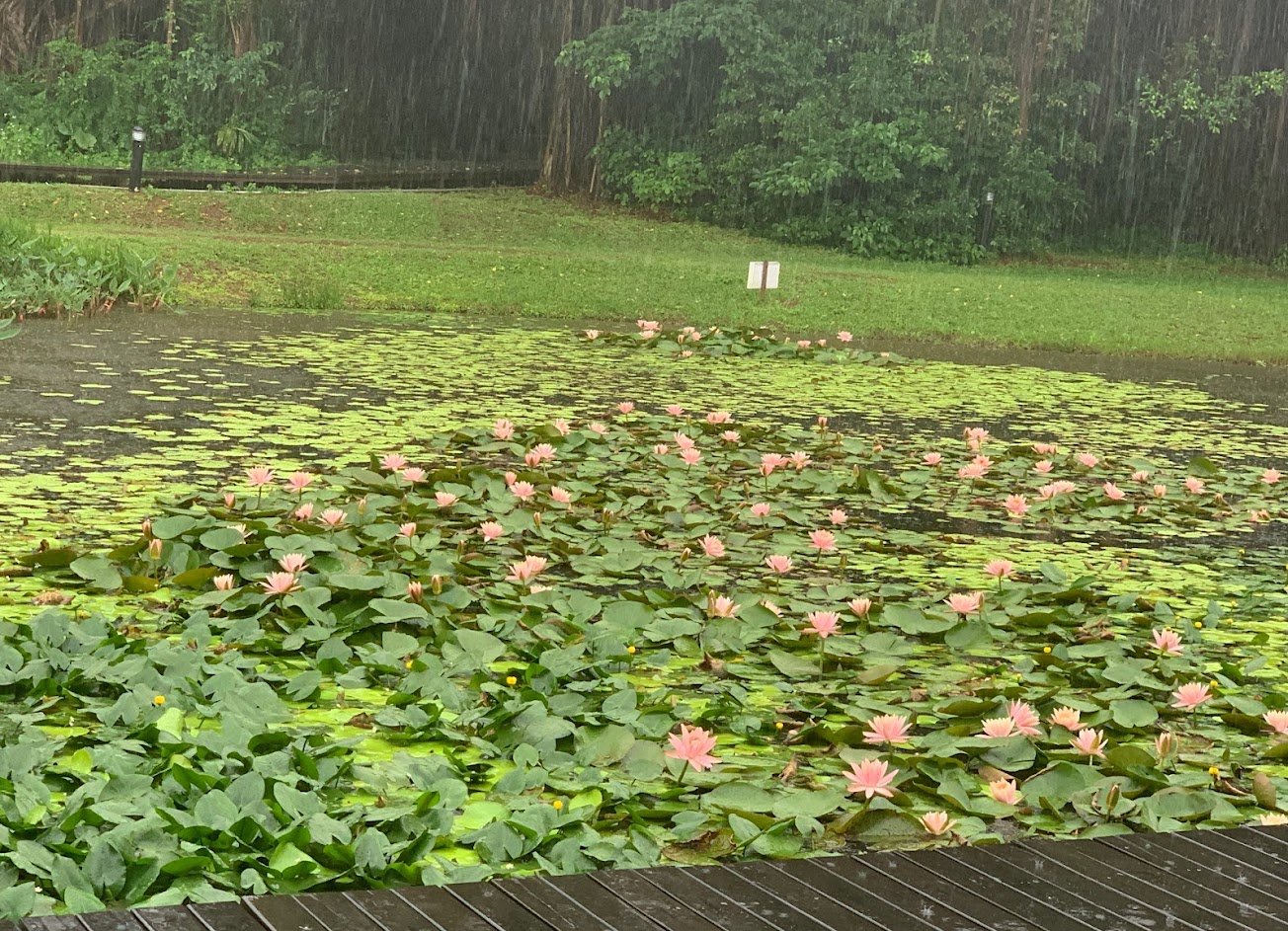 園區乾淨,睡蓮池漂亮,鹹豬肉、辣雞丁套餐都好吃!