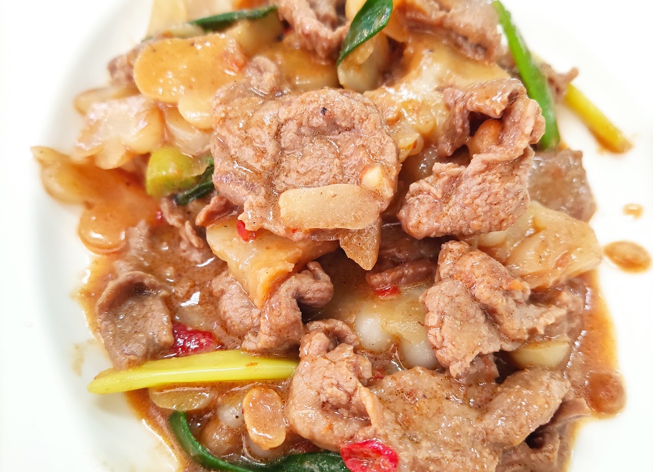 沙茶羊肉就是一整盤去掉米粉的料? 味道一模一樣,量也是很多,羊肉不老好咬。