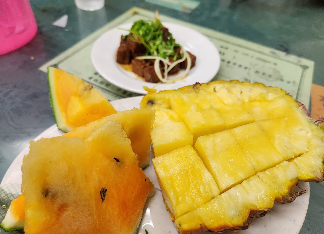 因爲聽廣播,素蘭介紹這家好吃,於是下班立馬過來吃,老板娘非常熱情,招待香蕉及水果,還有豆乾-好吃。