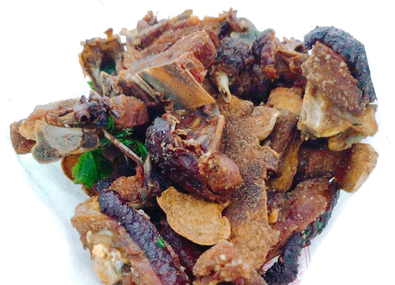 ?炒骨,有蔥、蒜、辣椒、酸菜、九層塔,配料豐富,鹹甜適中,微辣更美味。