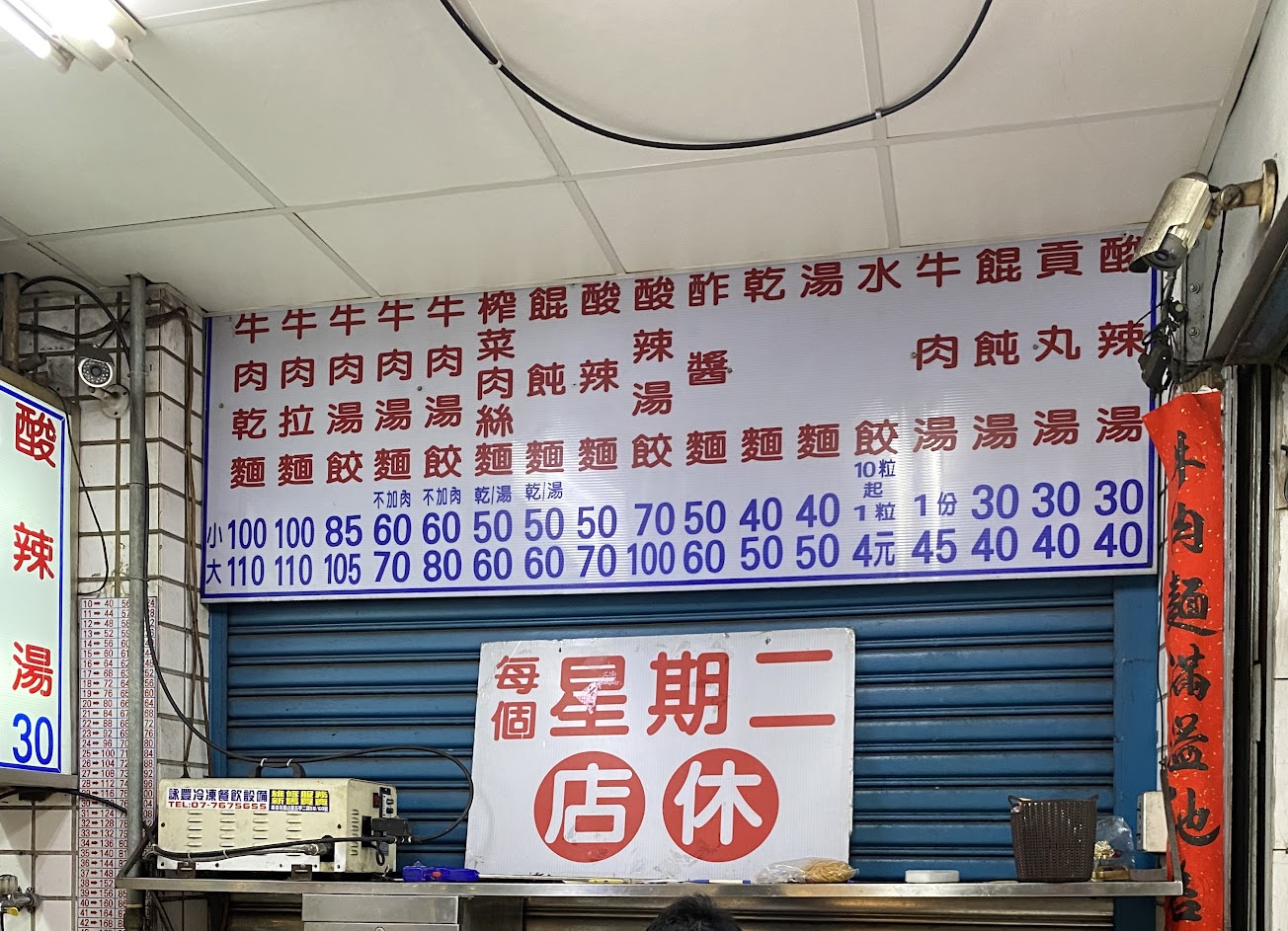 梁師傅的滷味很好吃,醬汁香而不鹹,牛肉麵好吃,水餃蠻大顆的,最重要的是辣酸菜,如果敢吃辣的朋友一定要試看看,保證愛上辣酸菜。以五甲地區的牛肉麵店算排前三名。店裡的位置蠻多的,只是地上稍微油膩,環境衛生可以加油。闆娘的記憶力很好,客人點什麼都能記住,態度也很不錯? 餐點類型 晚餐