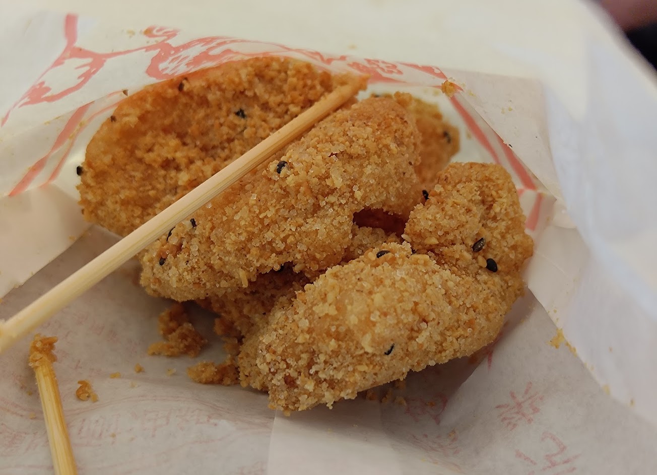 沒聽過這個食物,蔴糬炸好裹上糖粉花生粉,好像縮小版的白糖粿,認真覺得很好吃