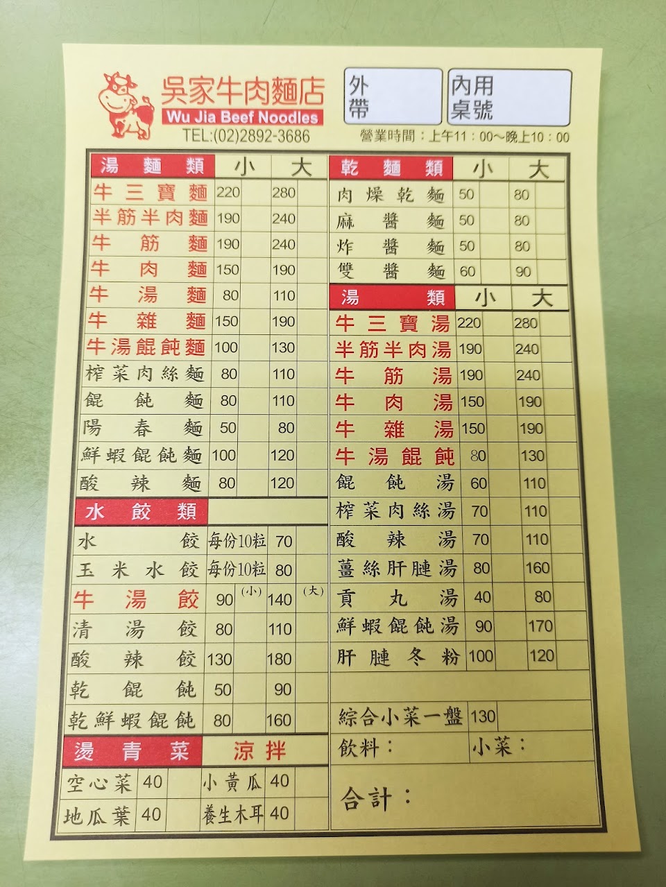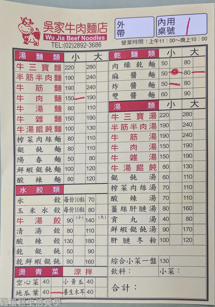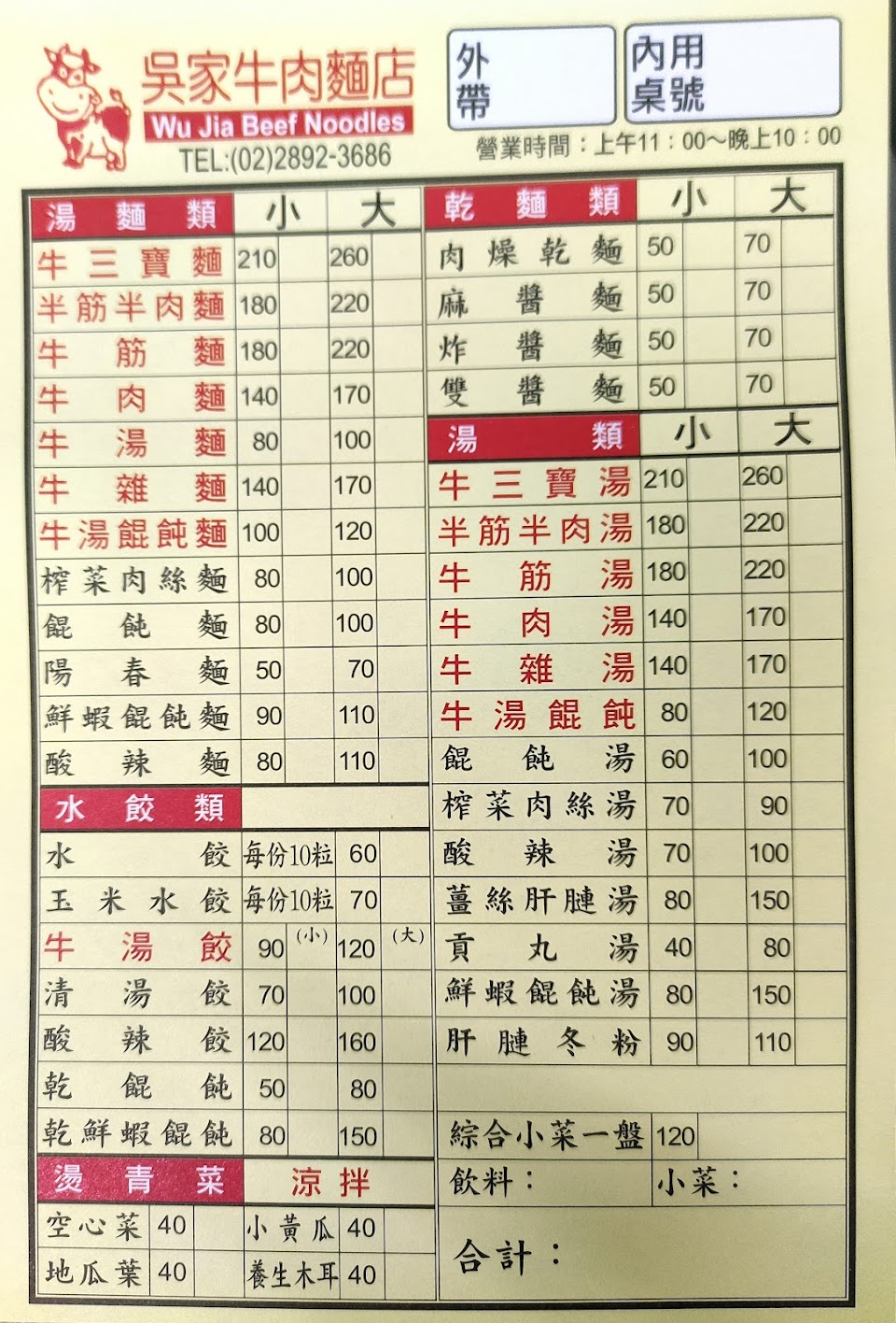 2024最新在地推薦餐廳的菜單_吳家牛肉麵店的菜單、圖片