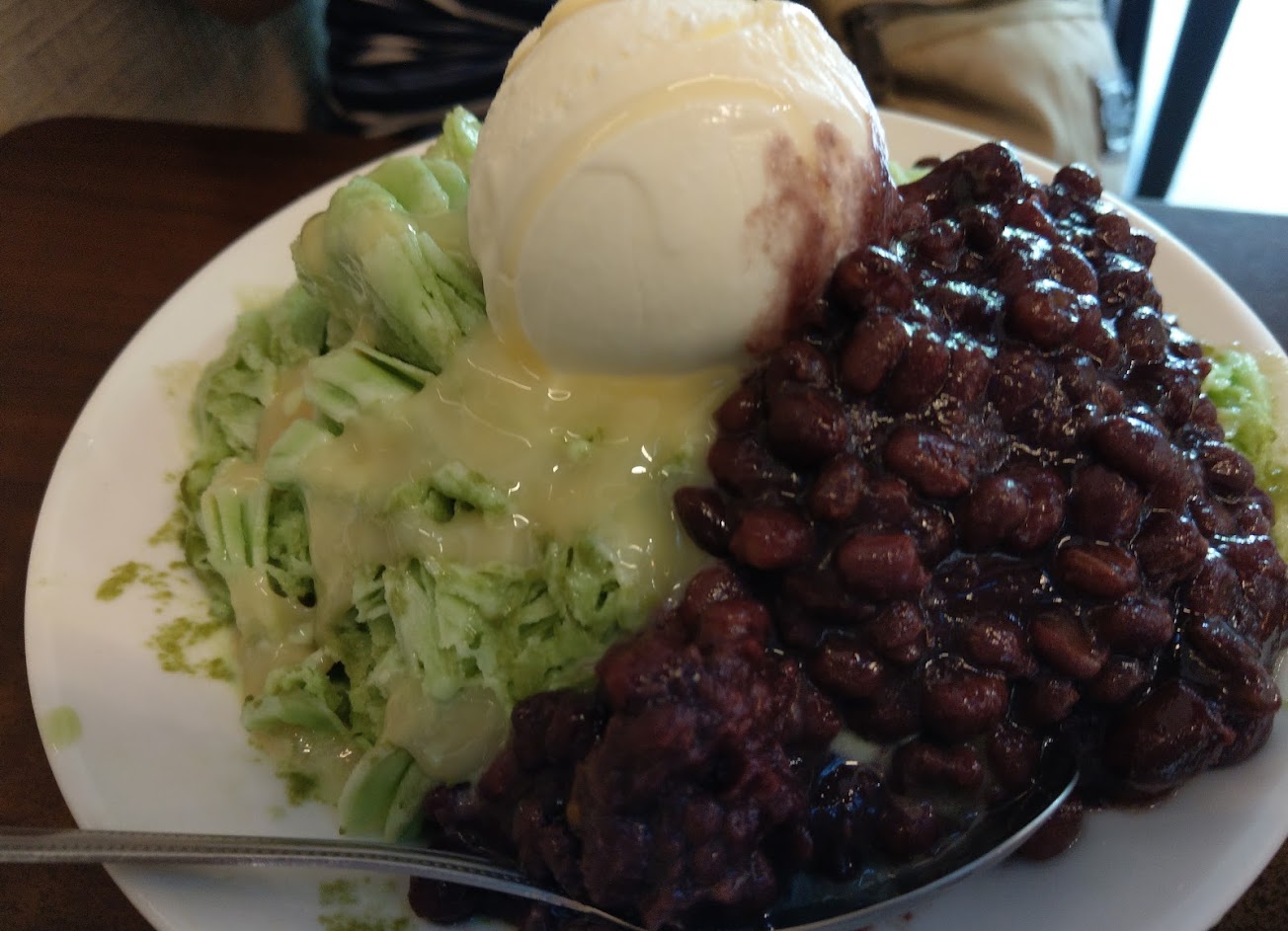 我吃了豆腐甜點,丈夫吃了雪冰。兩者都很好。