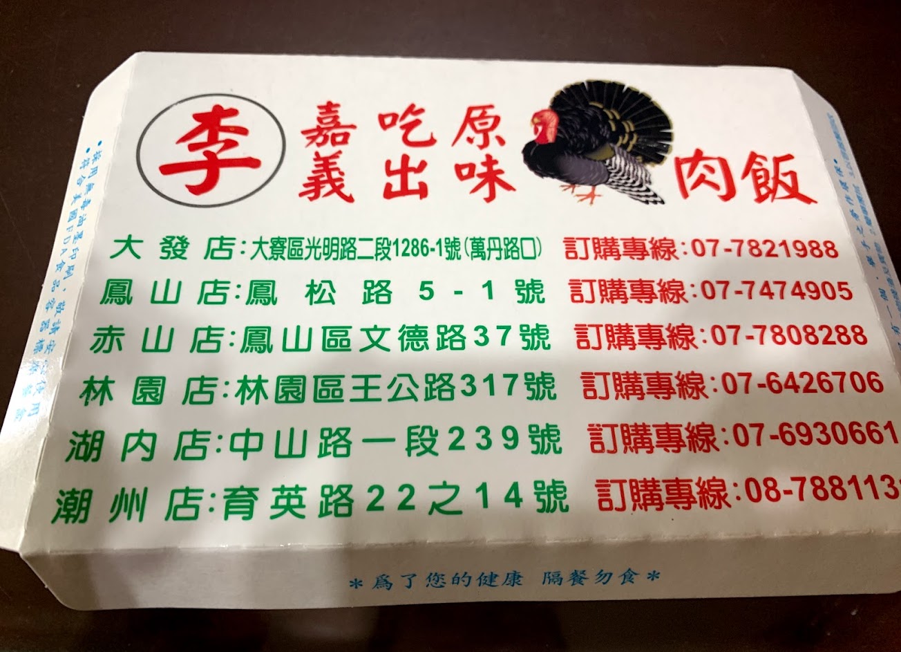 大的火雞肉飯內用45,外帶60,價差有夠大,現在有了一定發展,翅膀硬成這樣也是令人瞠目結舌