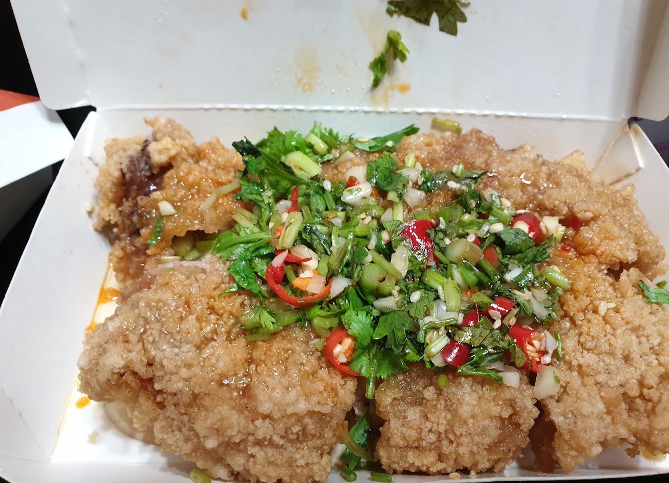 90塊椒麻雞便當裡的椒麻雞外皮大概佔了4/3 那個肉大概只有三到四塊 可以把名字改成椒麻脂肪便當了
