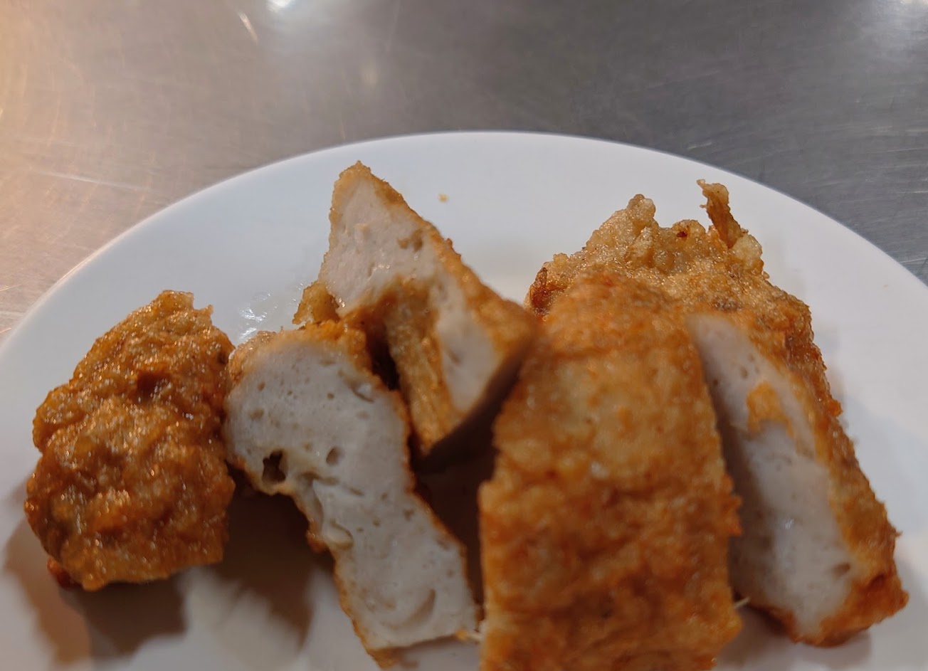 米粉是粗米粉,湯很鮮甜很好喝,但湯或魚漿還是有細碎魚刺,吃的時候可能還是要小心。炸牛蒡也蠻好吃的,有點像是牛蒡味的甜不辣,可以點來當配菜嚐嚐