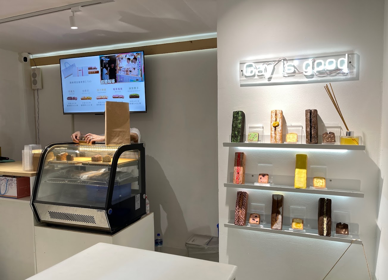 店乾淨簡單但針對商品沒有很喜歡,價格偏高、磅蛋糕實際大小和口感 不符合購買前對實物的期待