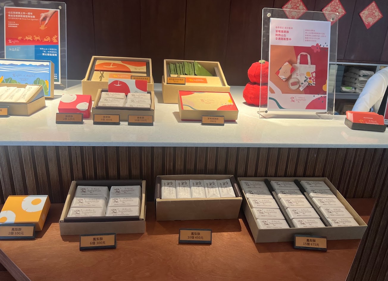 排隊等候安排入座 享受免費體驗點心套餐 喜歡 選購伴手禮帶回家 服務人員都很親切熱誠 不止是鳳梨酥 開發了更多樣性的產品 這次有蘋果酥和山丘芭娜娜 還特別推薦的搭配紅茶和咖啡 2023/02/05蘋果酥有柚香 平衡甜度 讚