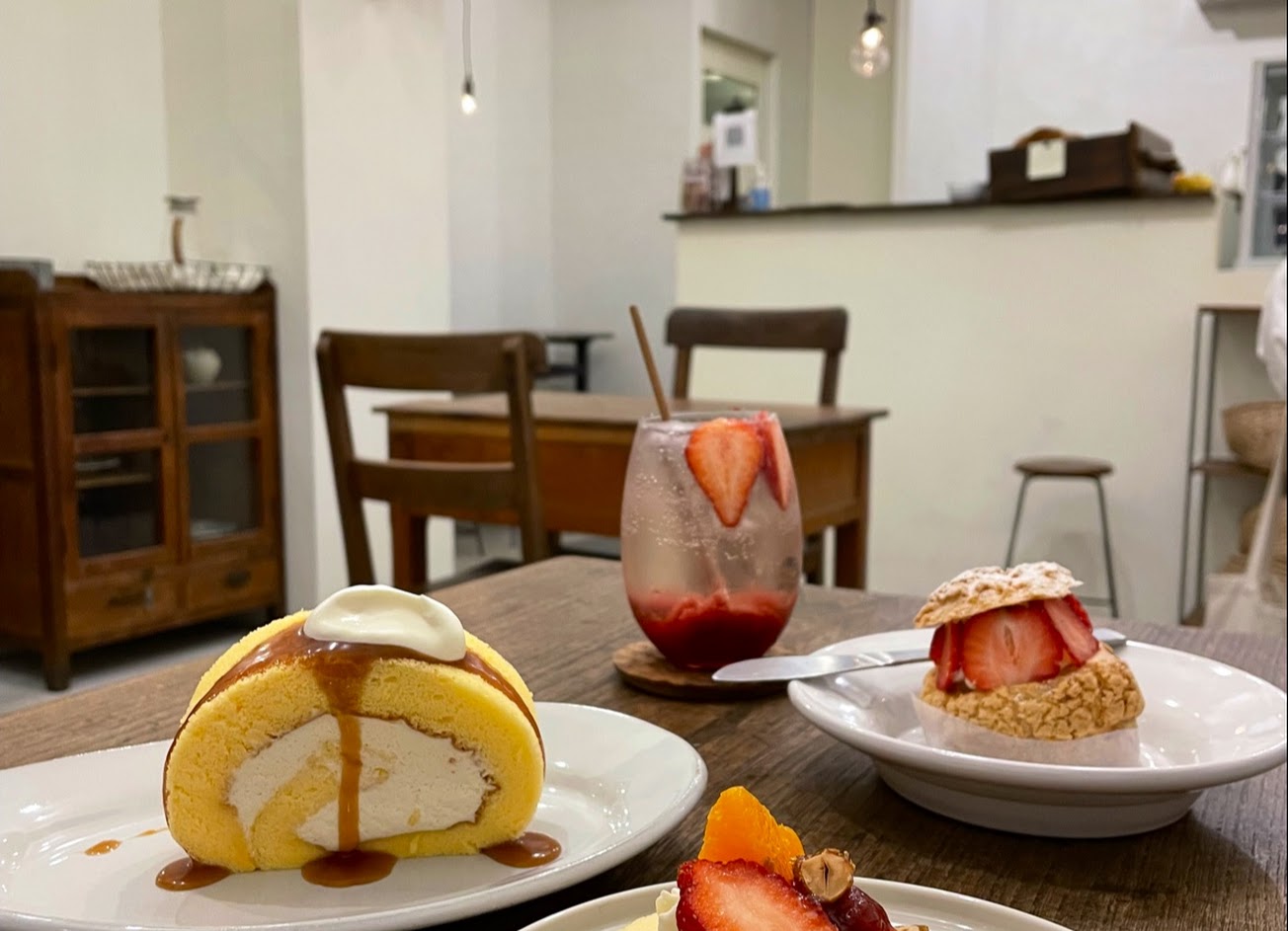 這裡的減法美學蠻值得細細品味的,簡單燈泡的運用,有胖有瘦的水杯,木質與白色的搭配。下午來的時候只剩3種甜點,我們直接包下?趕上草莓季,全部都草莓口味?海鹽焦糖蛋糕捲的焦糖真的很不錯,帶點鹹味不會膩而且很香,奶油餡也是香甜不是廉價的味道。但我最喜歡的還是草莓泡芙,他起來簡單吃起來卻不簡單,混了兩種內餡味道豐富。搭配草莓果醬為基底的草莓氣泡飲~已在天堂☁️☁️☁️ …
