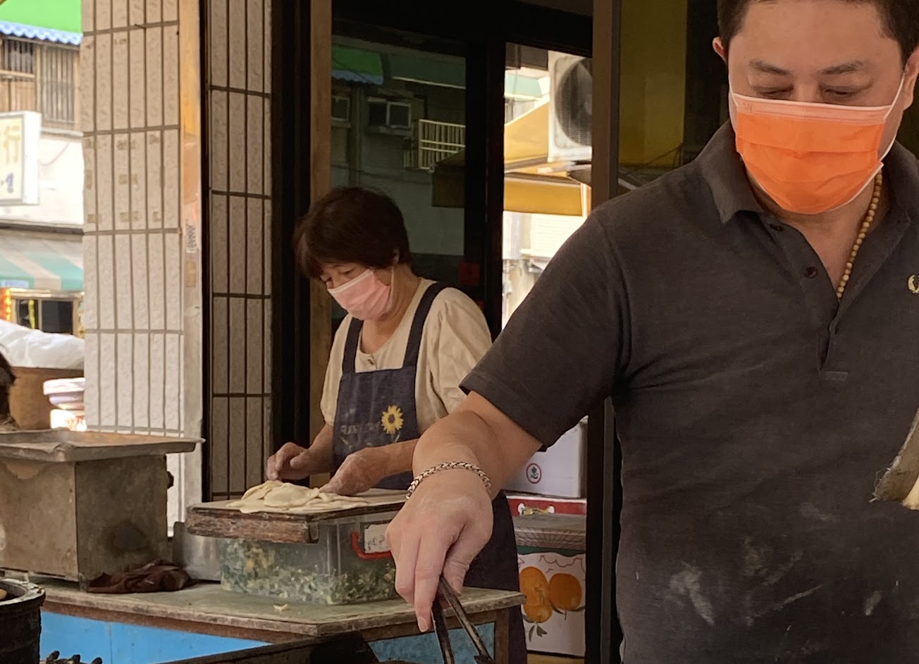 鹽埕區的巷弄美食點心,只賣蔥油餅、豬肉餡餅及韭菜盒,價格都蠻便宜實惠的。
