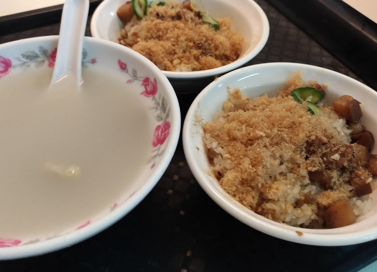 滷肉燥很香,米糕並不是黏結成糰糕狀的、相對米粒分明,是個人經驗當中“很不一樣的米糕” 魚丸湯頭夠鮮甜,丸子小小的很有彈性