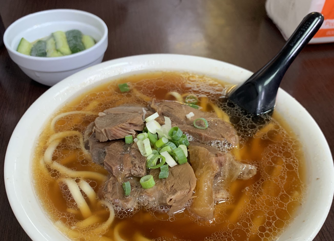 如果保持著要吃「紅燒牛肉麵」的期待來吃,或許你會失望。但有點鹽味拉麵的湯頭,配上台式白麵條,吃到一半再拌些蒜末的吃法,是老鹽埕人心中懷念的好滋味