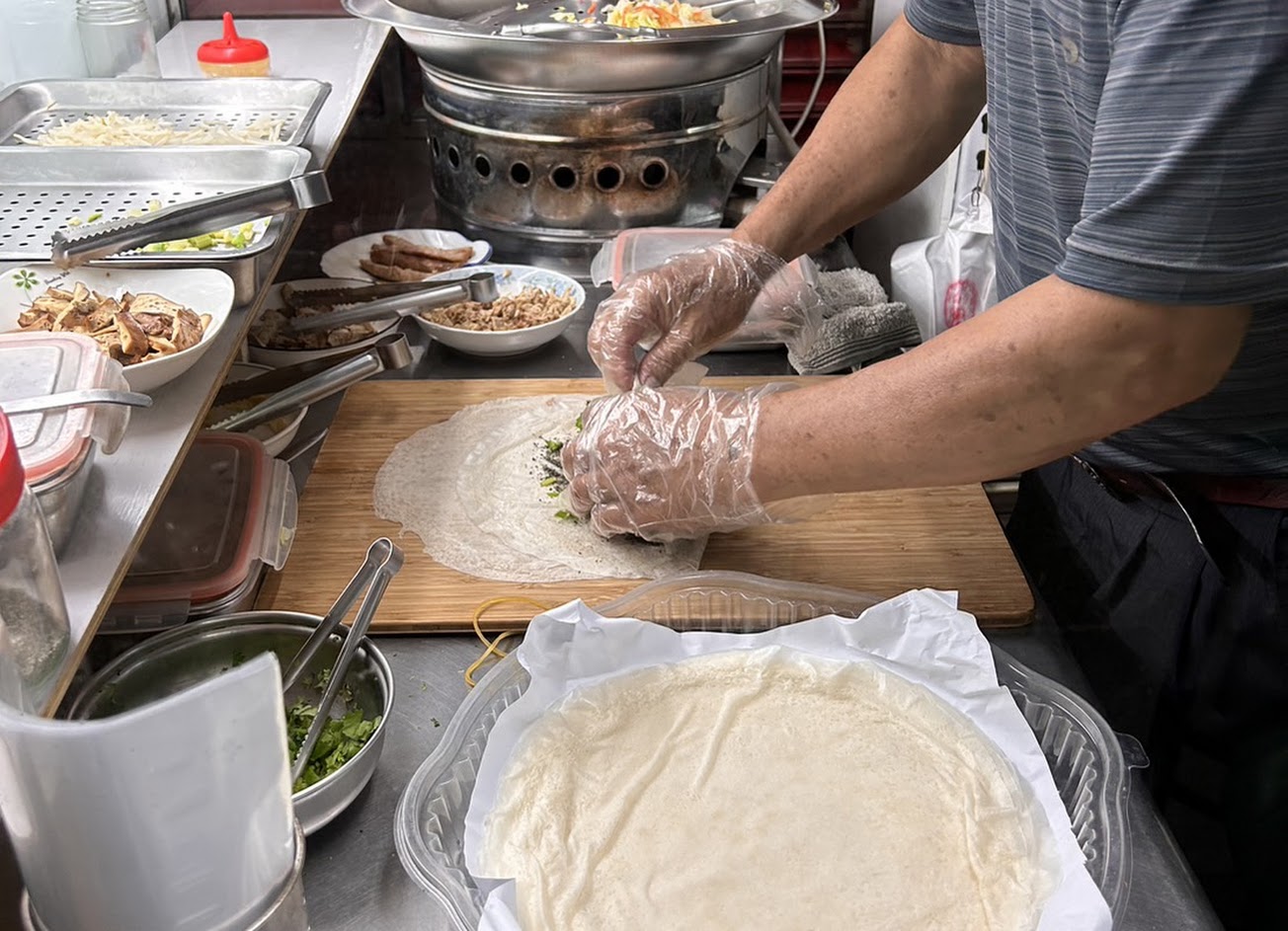 傳統的春捲(也有人叫潤餅)一卷$45,幾乎全年無休,現買現包真材實料,阿姨每卷都包很鼓,有時候很趕還能打電話訂時間去拿,最近常常早上當早餐晚上買去公司當宵夜,感覺吃裡面包好多的菜都健康不少!晚上如果買完會提早收喔!真滴好吃!
