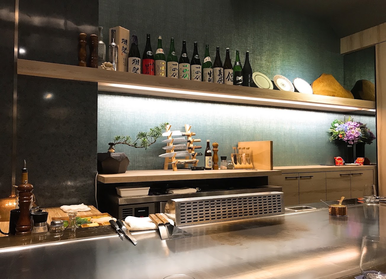 很棒的鐵板燒!座位不多,一家人就可以包場,非常悠閒!除了套餐另外加點龍蝦跟海膽!龍蝦肉多又鮮甜!海膽入口即化,份量剛好不會膩!