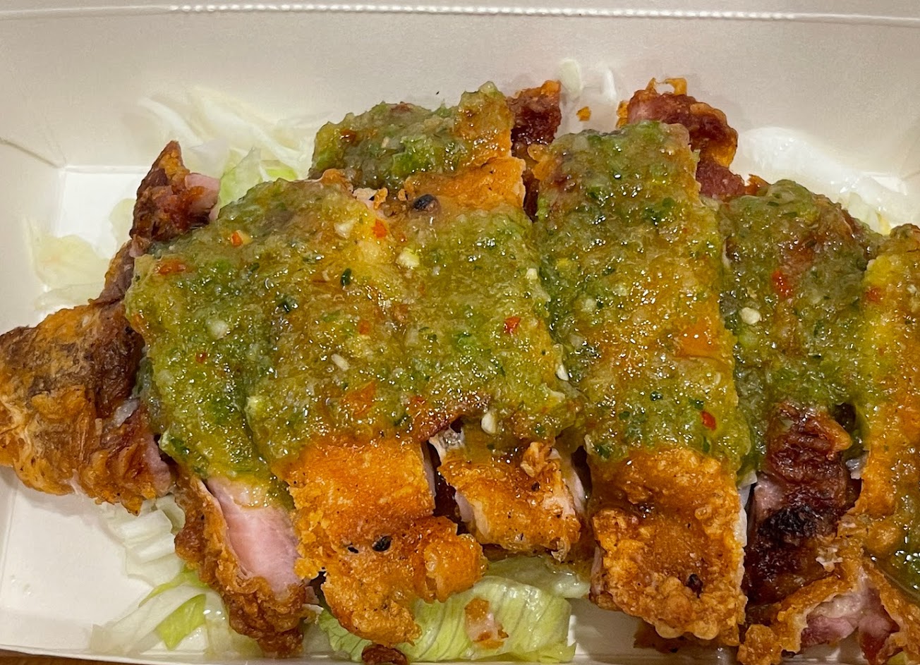 魚露炸三層肉- 今天讓我有驚豔到的是他的魚露醬, 帶點微綠色,我想配方是商業機密,有加新鮮檸檬的味道~而且魚露的味道不會太強也是讓人不討厭的那一種~如果這個醬有單賣,我一定會買!!