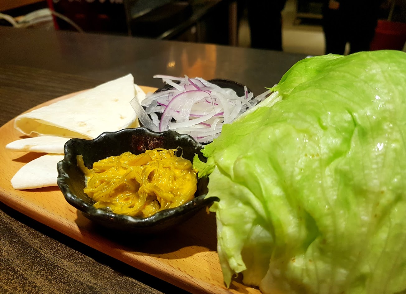 看第一份肉之後覺得熟度剛好,接著換一個不知道是不是新人的服務員『阿璊』開始烤給我們的肉非常的生,吃了第一口覺得不對,想要要求他幫我們烤熟一點,他卻說放著肉的熱度會在讓肉更熟一點,結果最後放到肉都涼了,還是呈現非常生的狀態,最後我們吃到剩一塊時趁『阿璊』離開後跟要『底迪』說我們肉很生的情況時,他看到我們的肉有嚇到連她都覺得很生,說要多補幾塊肉給我們,但我們已經覺得飽了而且因為肉太生有點沒胃口,所以只請『底迪』幫我們把肉烤熟一點,『底迪』請『阿璊』回來烤熟後,我們最後還有一盤櫻桃鴨還沒烤,結果『阿璊』不知道是不是怕烤不熟整個烤超乾的!