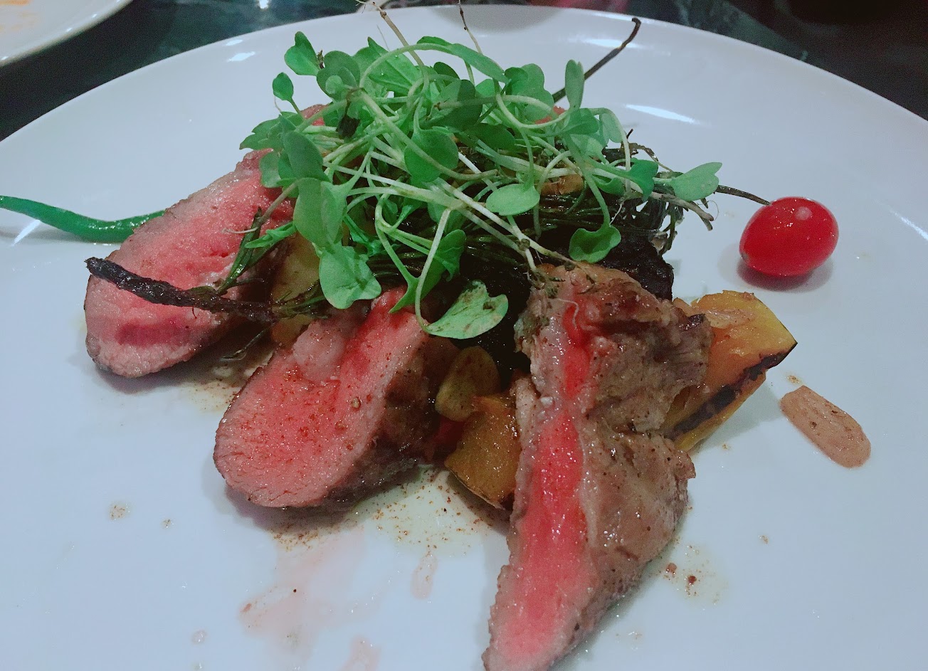 非常棒的用餐經驗。空間佈置得宜。女服務生才貌兼具,談吐大方,而且善解人意。我點了一份主餐,不想搭配套餐,但想吃點沙拉。單點沙拉都是雙人份的,於是想要放棄(雖然服務生已示意可以幫我準備一份小的,但我也不想佔人便宜,要問價錢也太麻煩,乾脆不要菜好了)但是,她很體貼,還是送給我一小份沙拉,讓我解解牛肉的重味。這種被關心的感覺令我永生難忘。