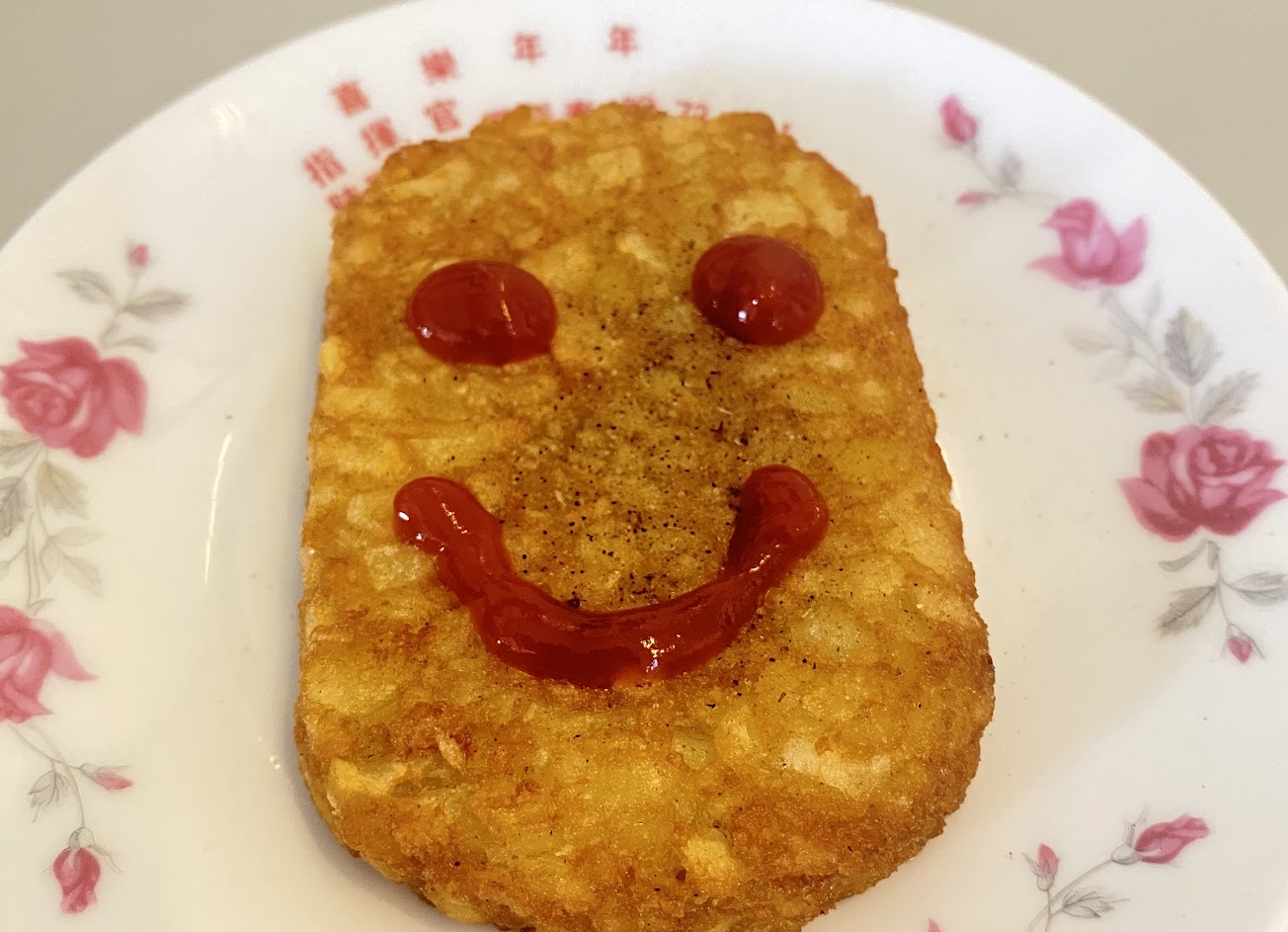 很謝謝板娘端出薯餅時畫出個笑臉…又拿出了幾十年前才有的盤子~~哈哈!!