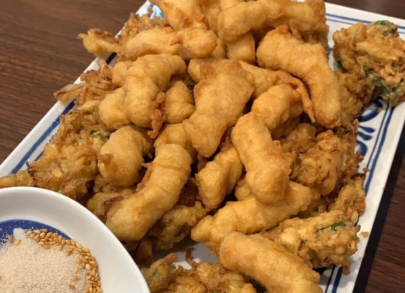 卜肉酥脆香甜份量著實驚人, 豬里肌肉軟嫩,配酥炸時蔬, 單吃或是沾胡椒鹽都很涮嘴, 建議店家可以提供大小份的。