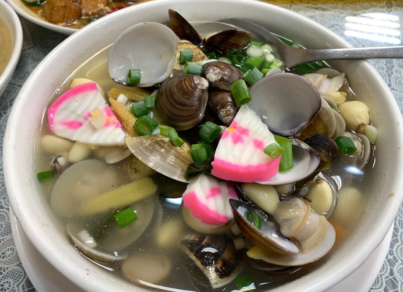 2022/10/26帶家人二訪,晚餐點酥炸肥腸、三星蔥炒松阪豬、龍鳳腿4、炒飯2人份、黑胡椒洋菇、炒三星蔥、冬瓜蛤蜊湯、皮蛋地瓜葉,整體口味偏重,但是好吃,肉類的肥腸、松阪豬,海鮮類的蛤蜊湯,都是一時之選,只可惜這陣子宜蘭連續大雨,導致三星蔥品質不佳,否則將會更加美味。