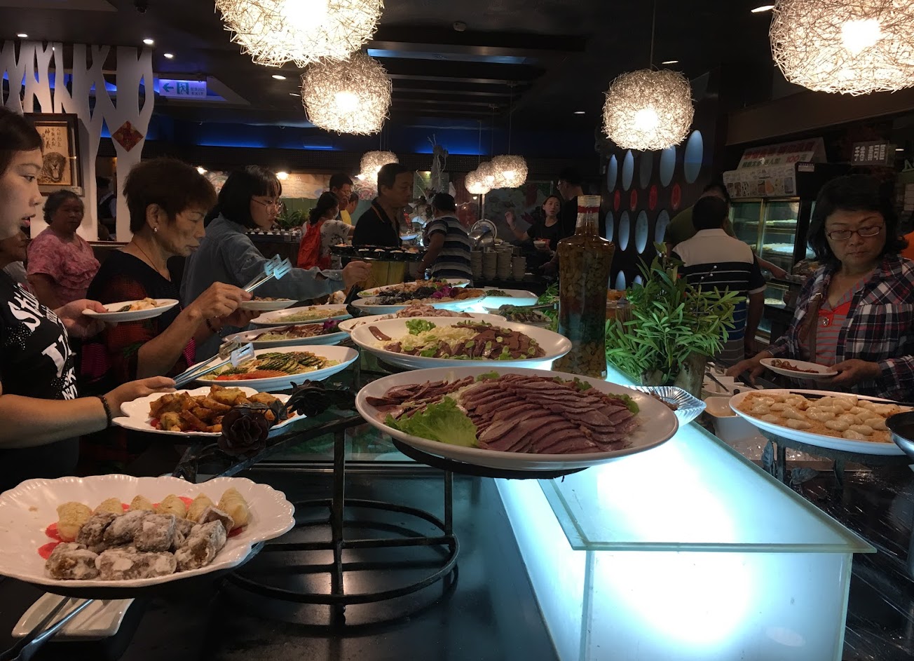 菜色多到眼花撩亂!晚餐價位加一成5佰多塊真的物超所值,味道也好,只不過品質也剛剛好。所以超推薦現場現做的菜,熱炒、小火鍋、燒烤類,尤其海鮮類都很新鮮,不管怎麼料理都好吃哦。注意到一項別家吃到飽餐廳沒有的大大特點,就是熱菜類盤上沒有了,下盤菜就推出新菜色,因此提醒大家最好沒事就起來走走,說不定又看到愛吃的菜了。