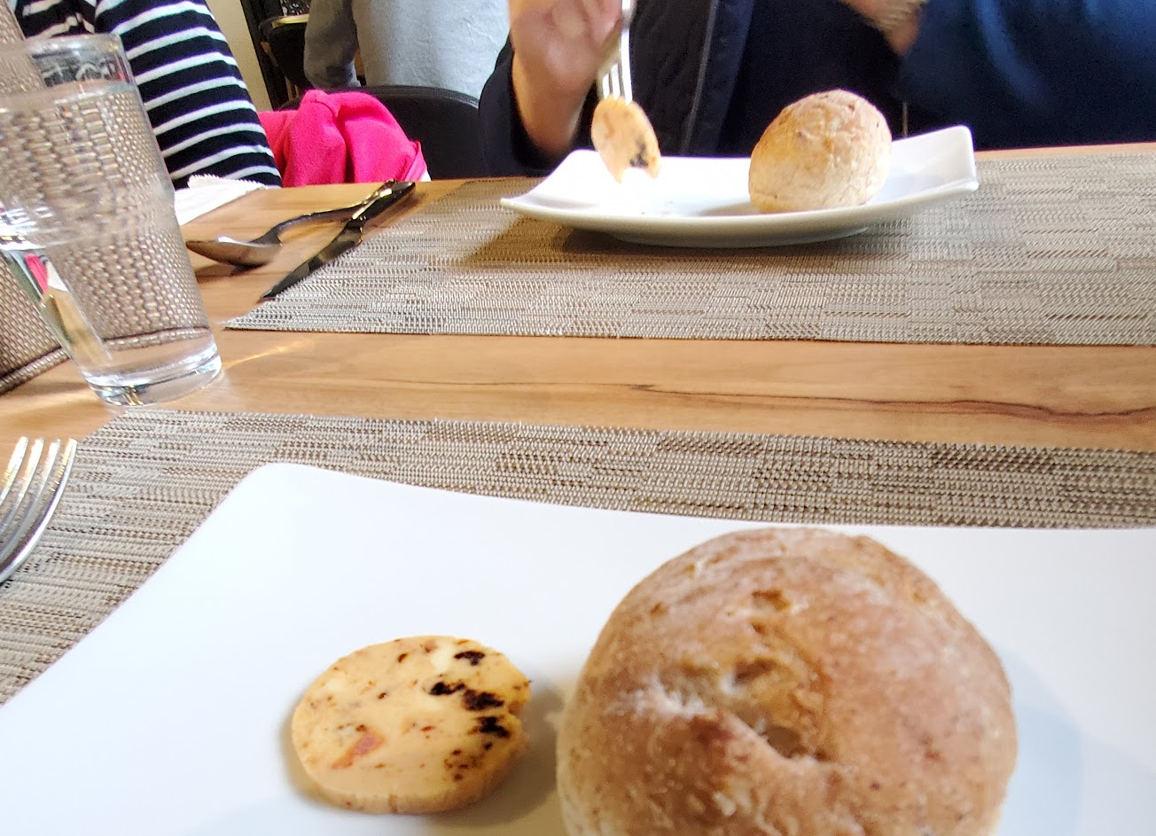 歐式麵包搭配微辣的煙燻奶油,把柔軟麵包的香氣提升一個層次,讓人想再吃一個。