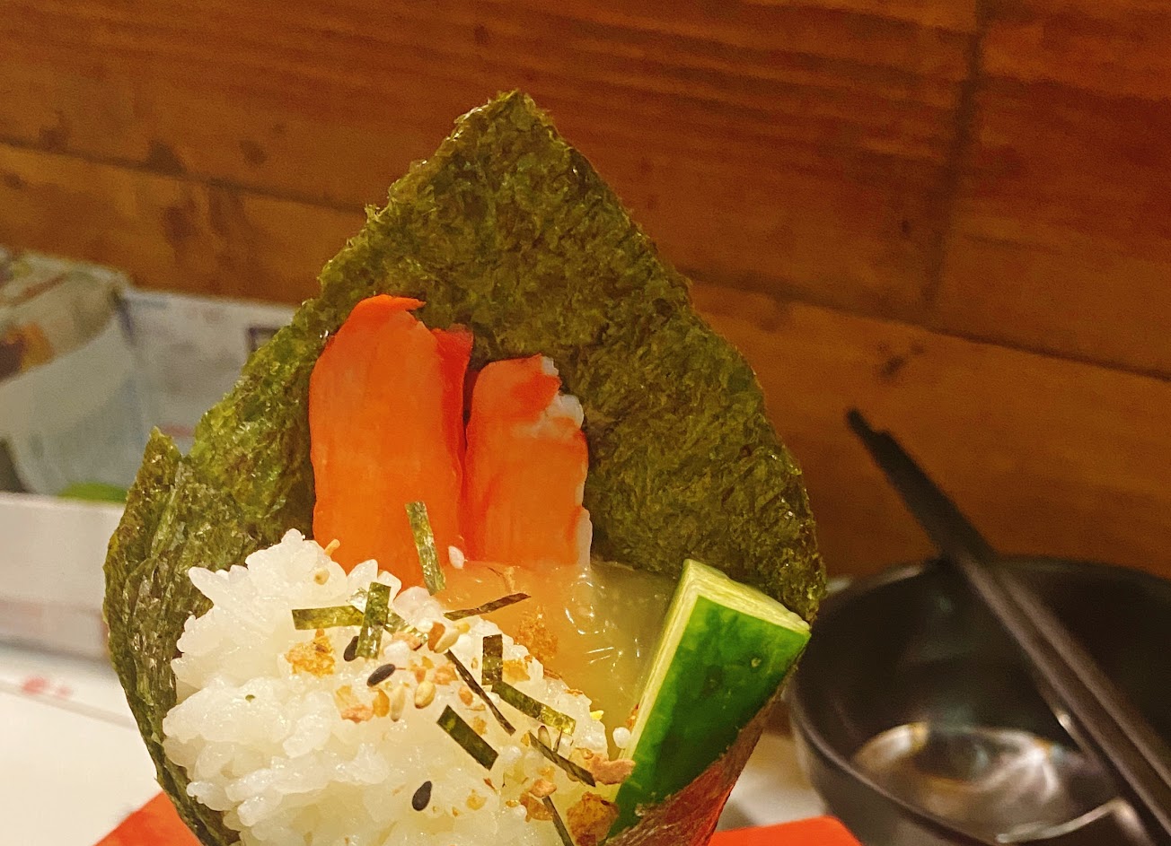 ?️軟殼蟹手卷採用新鮮現炸方式,整隻完整的鋪在手卷上,裡面還有包入蘋果,不僅是味蕾上的享受,也兼顧了口感,怎麼能錯過這道呢!