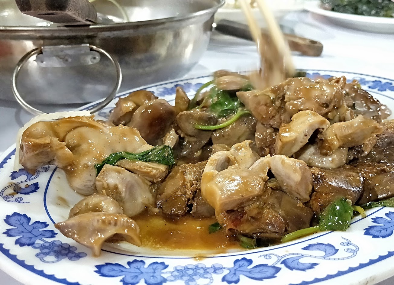 上菜速度慢,有些特色的私人菜不到中午就沒了,雞肉肉質味道中上,雞油醬油配飯很下飯。