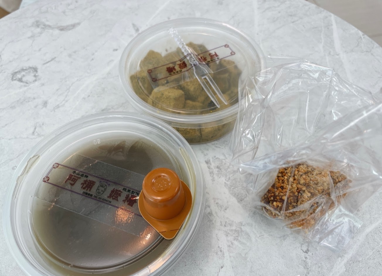 傳統好味道,都是沒包餡的,皮有三種可選,粉是芝麻或花生(也可混合)。麻薯皮很Q放到第二天依然美味。紅茶蕨餅有些人不愛口味比較個人,但口感是好的