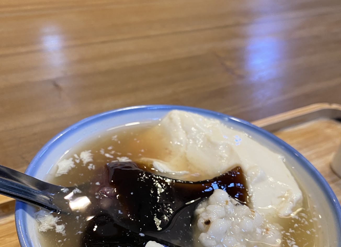 裡面有紅豆 薏仁仙草 豆花 冰冰熱熱的口感 酸甜酸甜 價格也不會很高。可以試試看