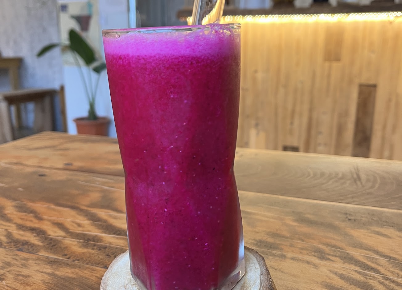 霜淇淋是火龍果口味。火龍果+牛奶。吃起來不會太甜。但可能自己做到。所以融化很快